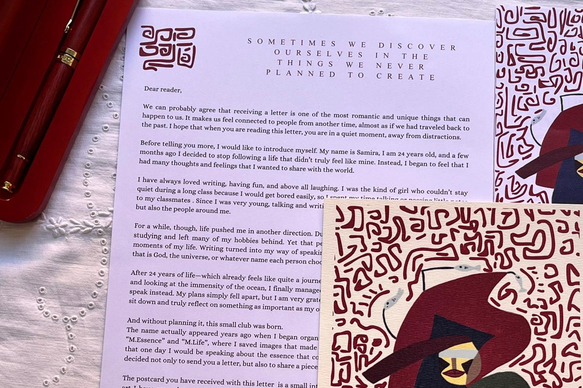 In a world flooded with screens and notifications, receive something different: a physical letter, written and designed especially for you. Slow, personal, and sincere. Each month, your membership brings you creative inspiration in art and profound reflections that touch the soul.